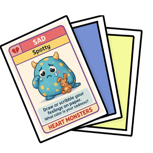 ✅ 34 Emotional Cards – Fun monster characters that teach kids emotions with calming exercises.