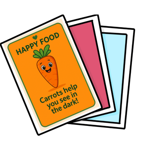 ✅ 25 Food Fun Cards – Cute fruit & veggie cards that teach benefits and make grocery shopping + Jolly Cards (Morning & Night) – Positive phrases to start and end the day peacefully.